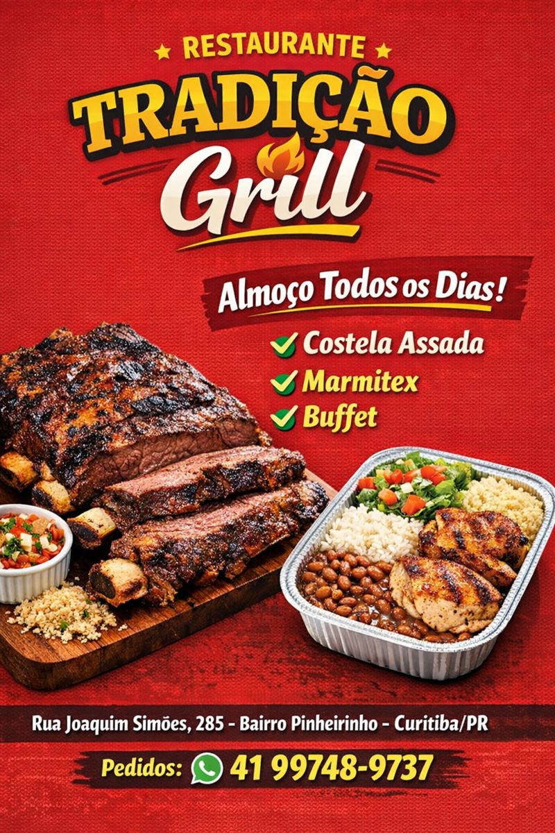 Restaurante Tradição Grill no Bairro Pinheirinho serve costela assada todos os dias